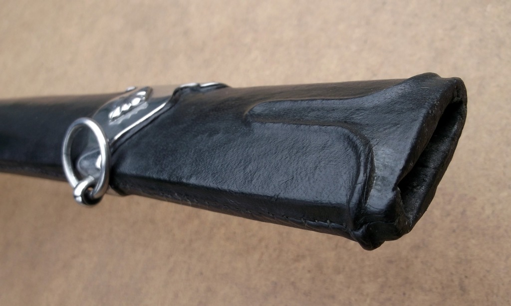 Trzonek drewniany obciągnięty skóra, ze splotem.